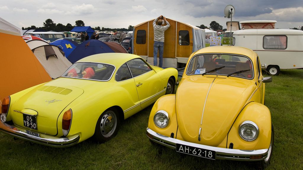 Een Volkswagen Kever en een Karmann Ghia