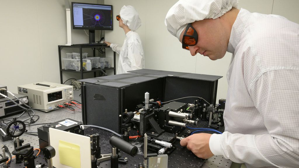 Een medewerker van een bedrijf in het Duitse Stuttgart werkt aan een quantumcomputer